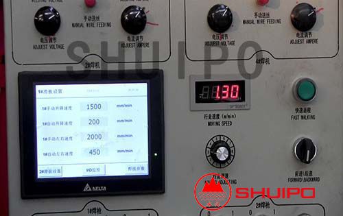 本機(jī)采用先進(jìn)的PLC可編程控制技術(shù)、微電子技術(shù),焊接速度達(dá)到2m/min,能在同一工件上一次焊接兩條水平相對(duì)的焊縫,工作效率是傳統(tǒng)設(shè)備的兩倍以上;采用了可靠靈活的柔性自動(dòng)仿形技術(shù),實(shí)現(xiàn)自動(dòng)跟蹤,避免了對(duì)變截面部分補(bǔ)焊的缺點(diǎn);雙弧雙絲送絲機(jī)構(gòu),確保了批量生產(chǎn)過(guò)程中穩(wěn)定的焊接成型,避免了薄板焊接時(shí)穿透現(xiàn)象。