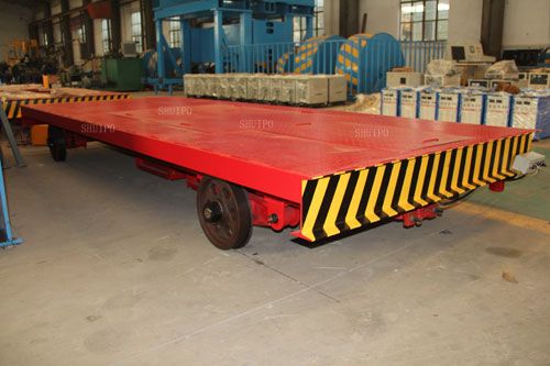 蓄電池給直流牽引電機提供電能,直流電機提供動力帶動平車運行。直流電機與交流電機相比它有不易燒損,起動力矩大,過載能力強的優點。與電纜卷線式、低壓軌道供電式兩種系列平車相比,蓄電池式具有更大的安全性能和機動性、靈活性,對軌道鋪設要求不高,故施工方便,費用低廉。